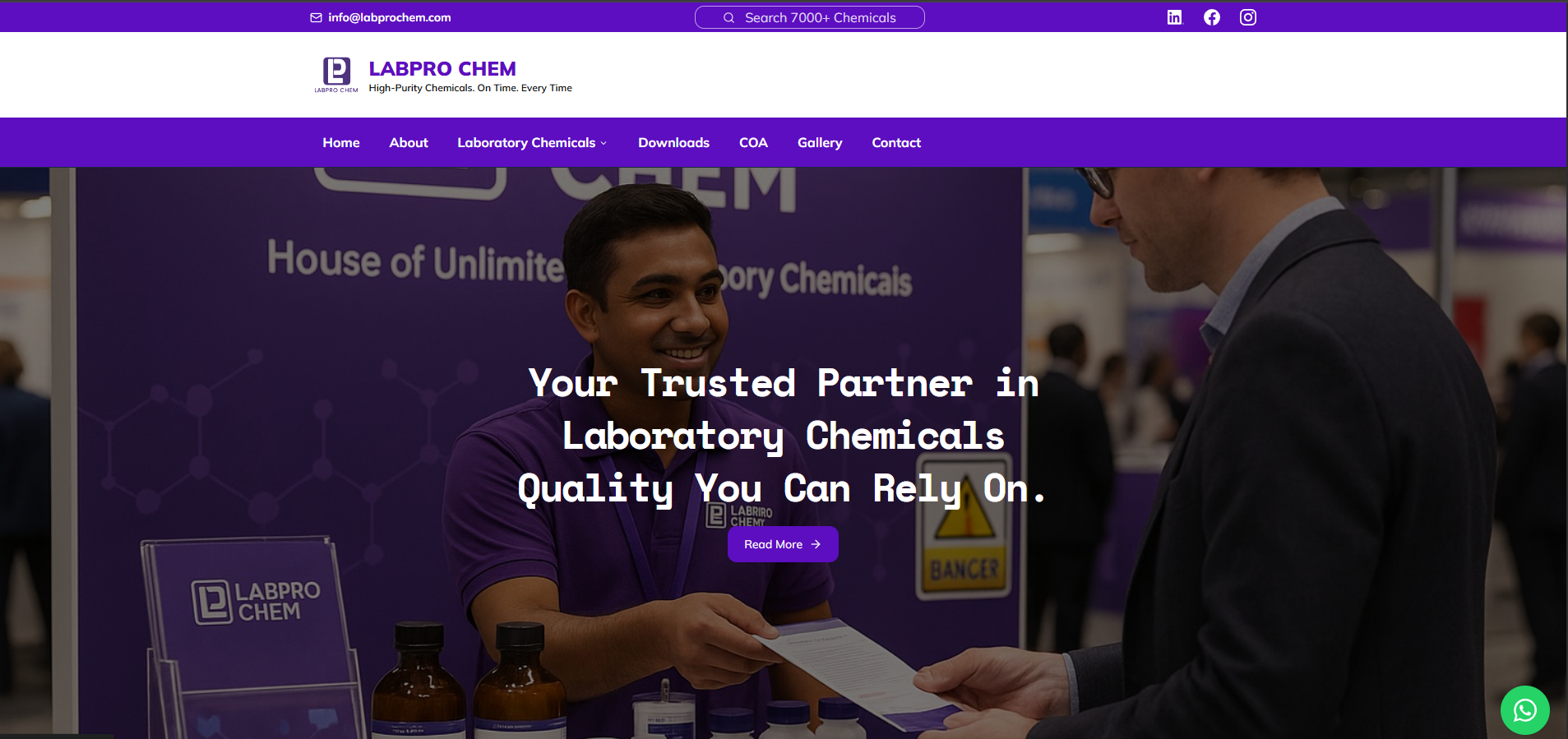 A corporate website for a chemical company to display product information and specifications.