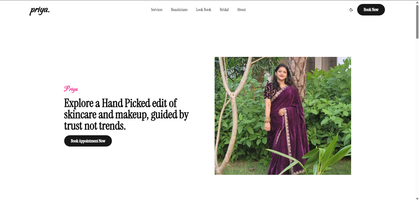 A high-performance web app for a beauty parlour, featuring a service gallery and online appointment booking.